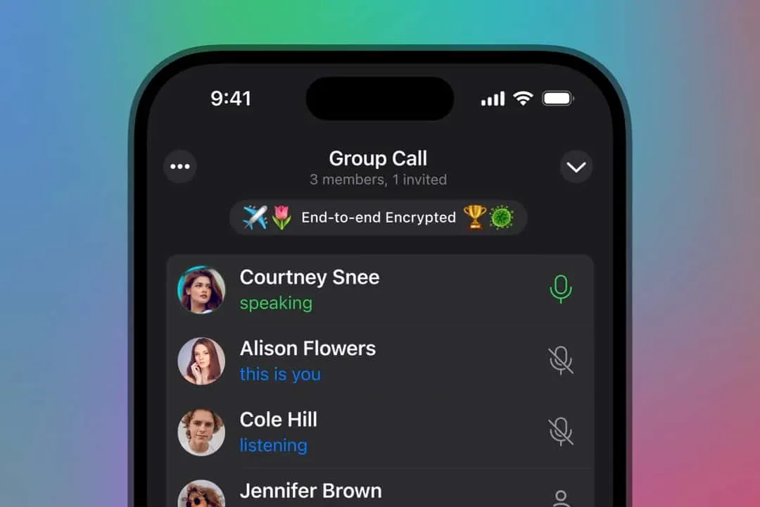 群组通话采用端到端加密技术,确保通话安全。参与者可以通过比较屏幕上显示的4 个表情符号来确认这一点——如果所有表情符号都匹配,则通话完全安全。